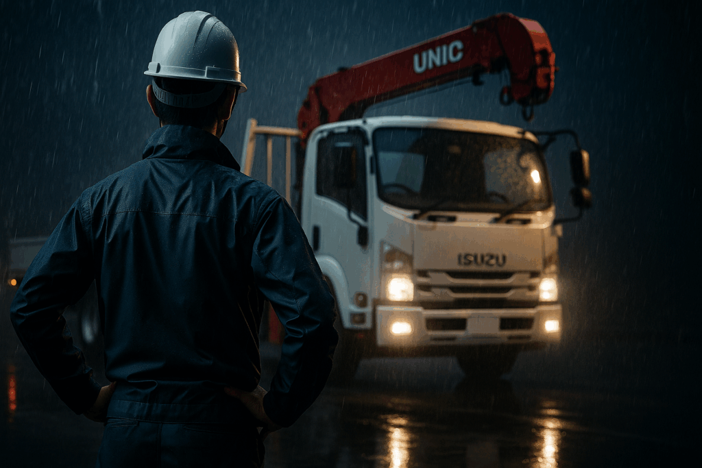 カテゴリー3 ホイール&足回り「走るための脚力」 どんな道でも走れる太いタイヤ。重い荷物を支えるサスペンション。ユニックの足元には、過酷な現場を支える“脚力”が詰まってます。こういう縁の下の力持ちこそ、現場では一目置かれる存在なんです。