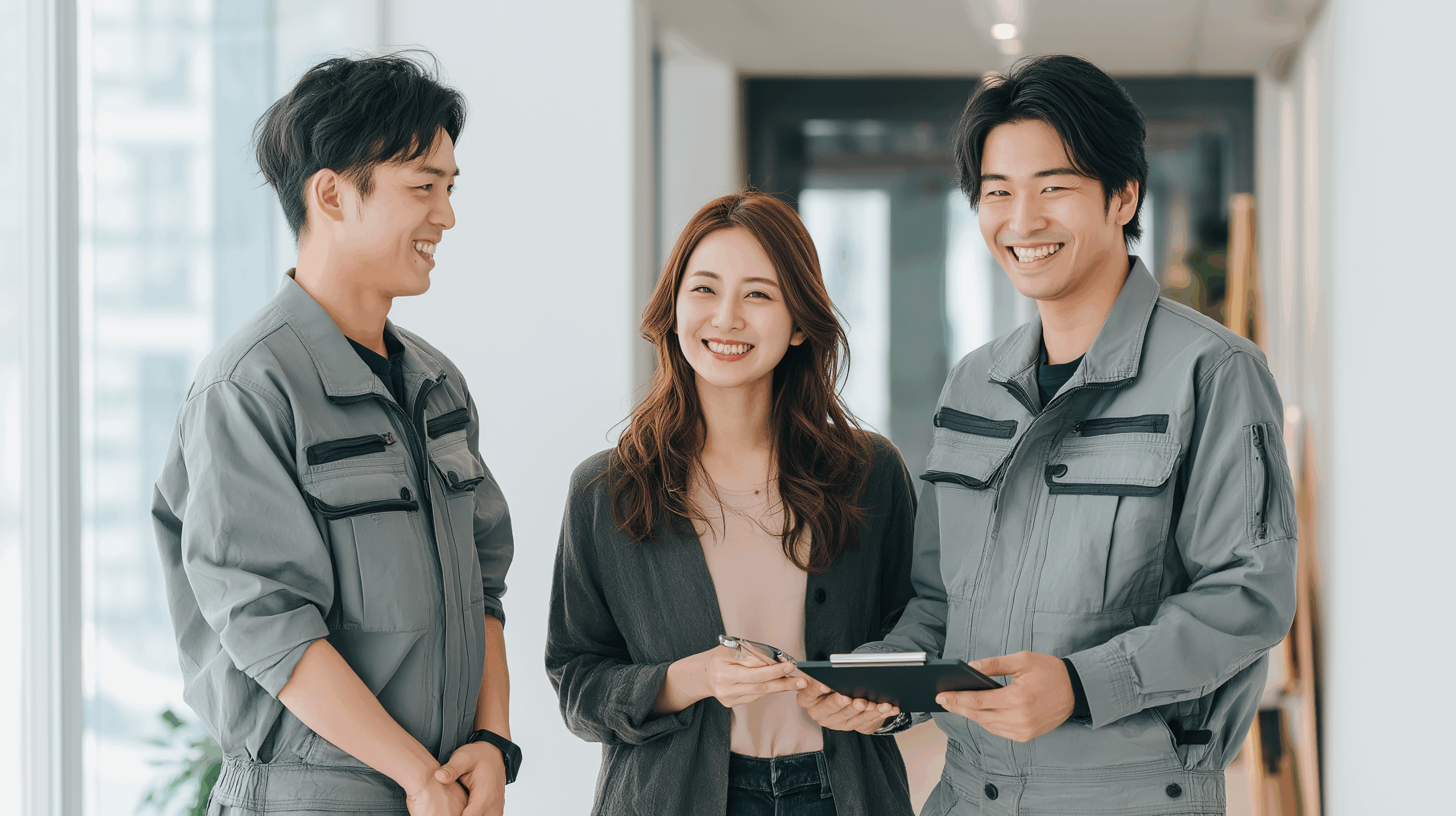 応募者対応や社内のサポート業務を担当しています。現場で頑張る職人さんが安心して働けるよう、相談しやすい環境づくりを意識しています。小さなことでも気軽に話してもらえるよう、会社全体の雰囲気づくりを支えるのが私の役目です。